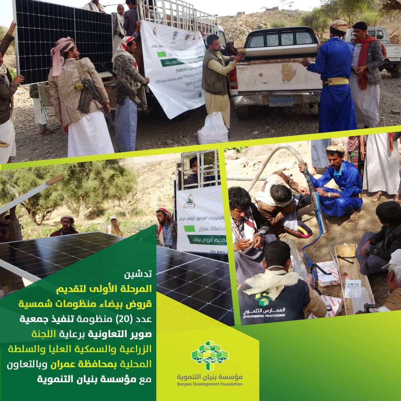 تدشين المرحلة الأولى لتقديم قروض بيضاء منظومات شمسية عدد (20) منظومة تنفيذ جمعية صوير التعاونية،