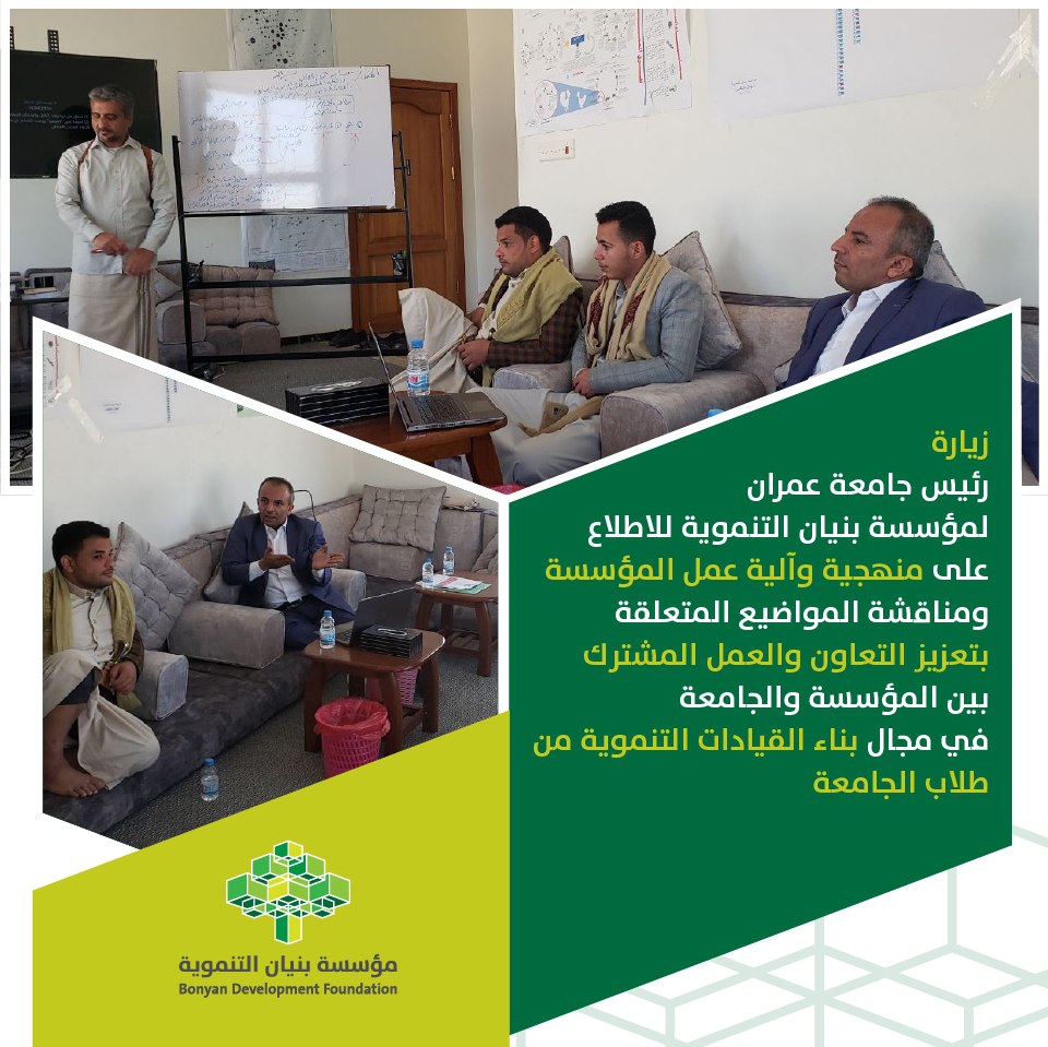 زيارة رئيس جامعة عمران لمؤسسة بنيان التنموية للاطلاع على منهجية وآلية عمل المؤسسة