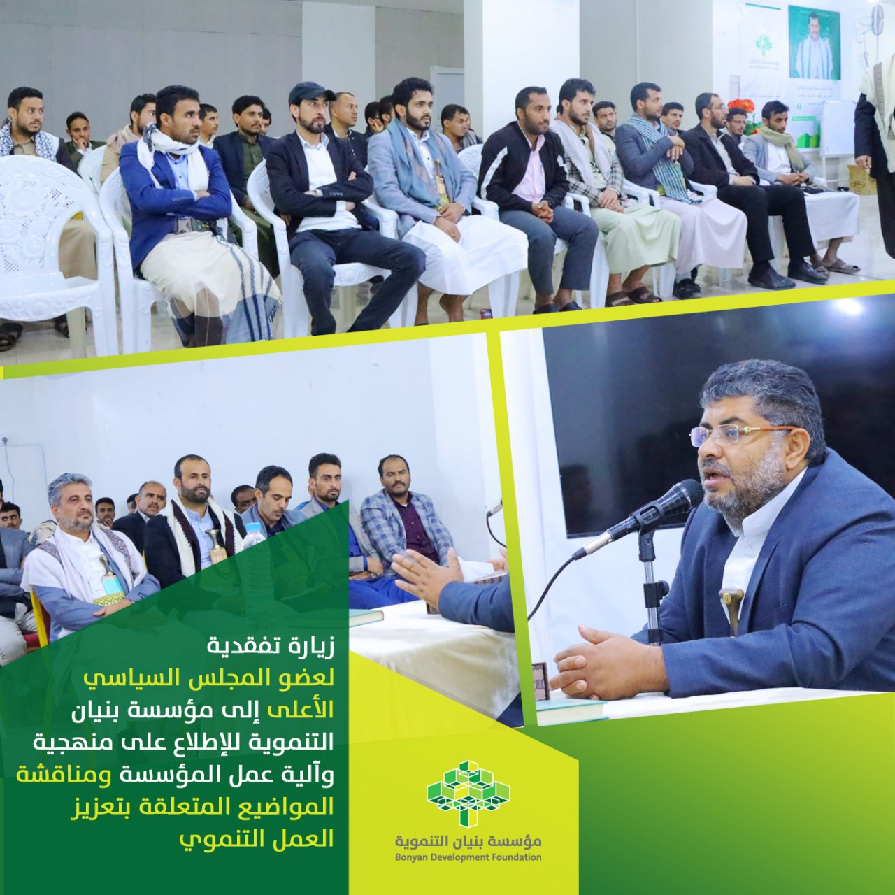 زيارة تفقدية لعضو المجلس السياسي الأعلى محمد علي الحوثي إلى مؤسسة بنيان التنموية للإطلاع على