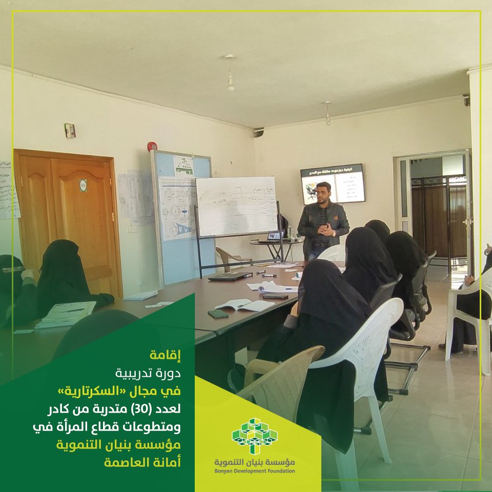 إقامة دورة تدريبية في مجال “السكرتارية” لعدد 30 متدربة من كادر ومتطوعات قطاع المرأة في