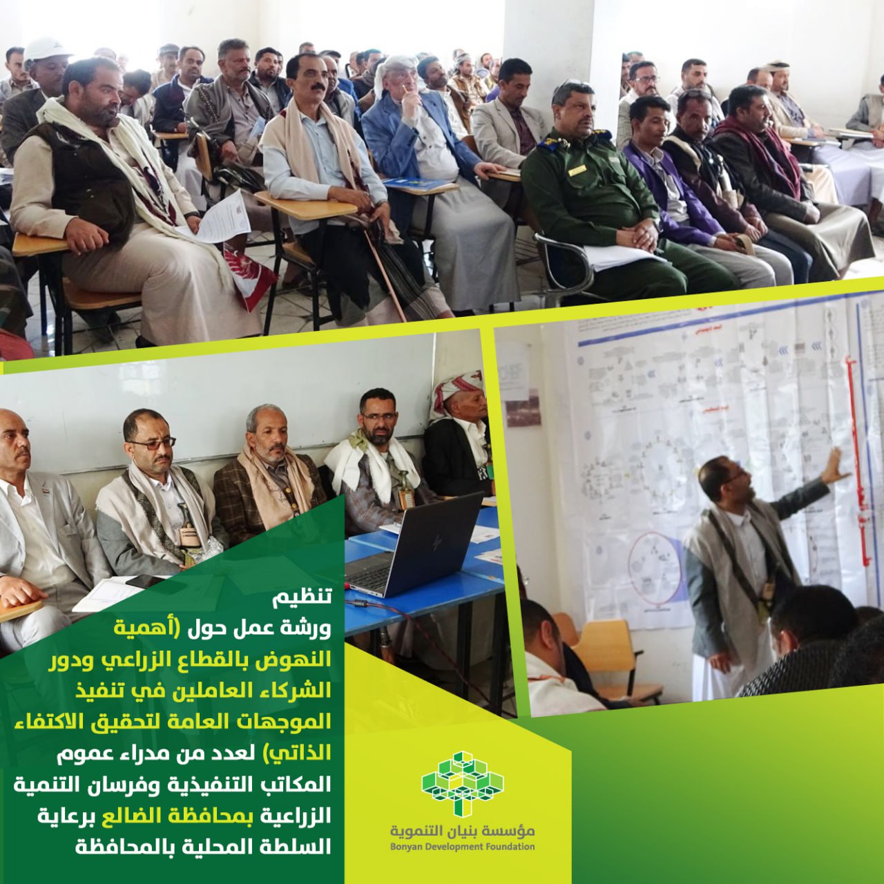 تنظيم ورشة عمل حول (أهمية النهوض بالقطاع الزراعي، ودور الشركاء العاملين في تنفيذ الموجهات العامة لتحقيق الاكتفاء الذاتي)
