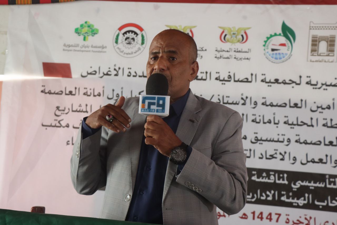 بدوره تطرق مدير إدارة الجمعيات بمكتب الشؤون الاجتماعية بالأمانة نبيل راجح، إلى الجهود التي بُذلت في التحضير والإعداد لتأسيس الجمعية التعاونية لأبناء مديرية الصافية.