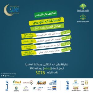 أسماء الفائزين في الحلقة الخامسة والعشرون من البرنامج المسابقاتي التوعوي “رمضان الخير”